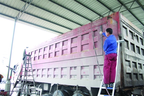 我县开展涉矿产品运输车辆超限超载和“跑冒滴漏”专项整治行动以来,成效明显。4月22日,一私自改装大货车车主主动拆除加高的栏板。联合执法队员表示,将在5月10起开展针对私自改装现象的检查活动,希望各货运业主主动拆除车辆改装。记者 陈睿溪 摄