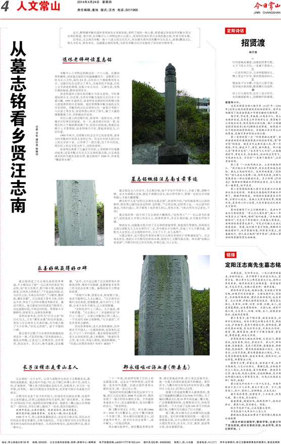 杨万里,字廷秀,号诚斋,江西吉州人。常山为两浙首站,是历史上许多饱学之士、商贾贩子上京城求功名,做买卖的必经之路。湖广江西诸省到京城临安(杭州]都要过招贤渡。招贤渡口位于现在的招贤街西边,系钱塘江源头常山江招贤渡,是杨万里回家的必经之路。