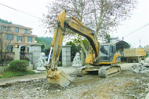 12月6日,青石镇溪口村入村主干道破损路面改造工程开工。这条路全长500米,宽7米,是进入青石集镇的主干道。工程预计总投资30万元,将在本月底完工。图为12月9日的施工现场。 记者宋婷通讯员周生根摄