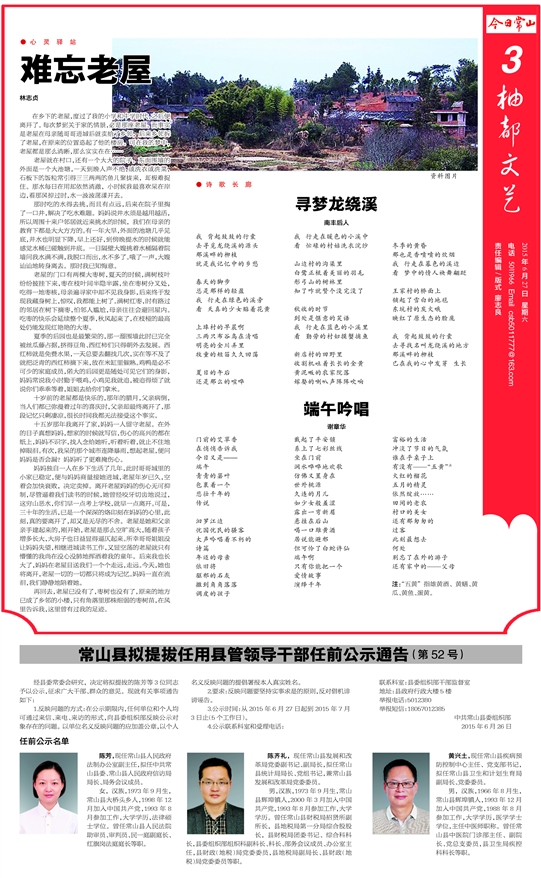 陈芳,现任常山县人民政府法制办公室副主任,拟任中共常山县委、常山县人民政府信访局局长、局务会议成员。