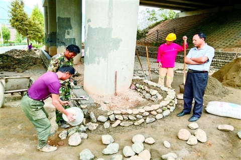 10月9日,记者在东案乡万安村看到,工人们用石块在高速桥底砌挡墙和铺设石子路。今年以来,该村启动美丽乡村提升工程,不仅新建了农村公厕,还将高速桥底等边角地带也进行了美化,村容村貌得到了进一步提升。