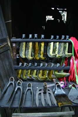 经过半个月寻访,终于在芳村找到了与影子一模一样的这棵香樟树。于是,就拜了“樟树老娘”,并用驴拉来了几袋铁钉,将整棵树密密麻麻地钉上钉子,防止人家砍伐破坏。从此以后,人丁兴旺的这户江山五兄弟,年年来拜年,邻近的村民也来沾光,带小孩来拜它做“樟树老娘”。如今,这棵香樟还在,只是五个枝桠只留下一个枝桠了,据说,江山的那户人家,如今也只有一枝兄弟还兴旺。不管这个故事是否真实,但是这棵香樟树,经过六七百年的风霜雨雪,依然还活着,这是芳村人最能记住乡愁的一个活文物,也是芳村民俗文化的一个载体。