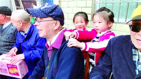 为庆祝我国第九个“敬老月”,近日,天马街道渡口社区联合江滨幼儿园组织近30名学生看望竹青敬老院的老人们,为老人送上牛奶等物品,并为其按摩、捶背等,陪伴他们度过了欢乐的时光。 记者汪杰摄