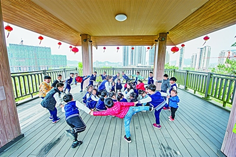 4月12日,风和日丽,县城不少小学及幼儿园开启了春游模式,图为心连心幼儿园的小朋友们在老师的带领下来到了心舟公园,领略新城区的建设风貌。