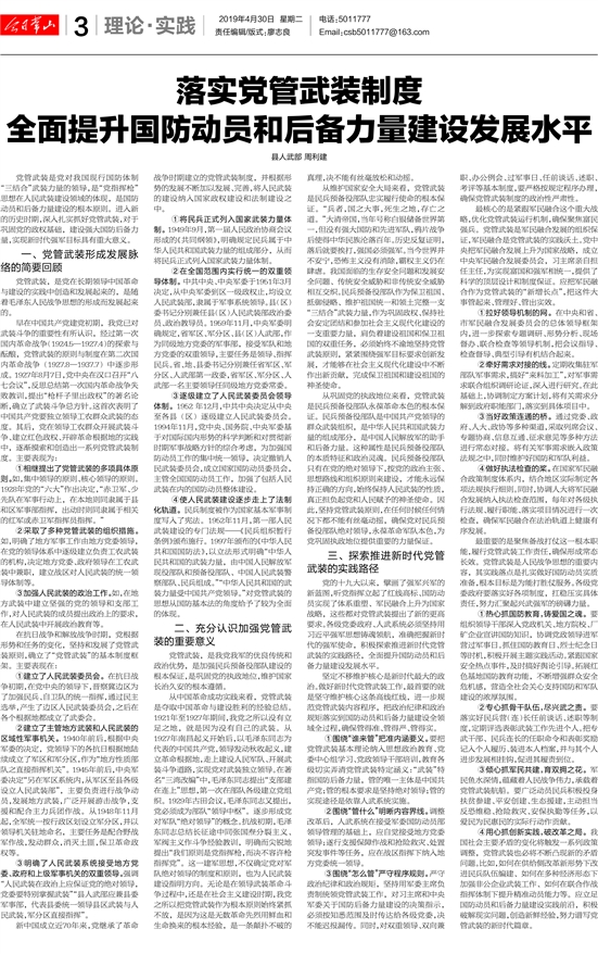 落实党管武装制度全面提升国防动员和后备力量建设发展水平