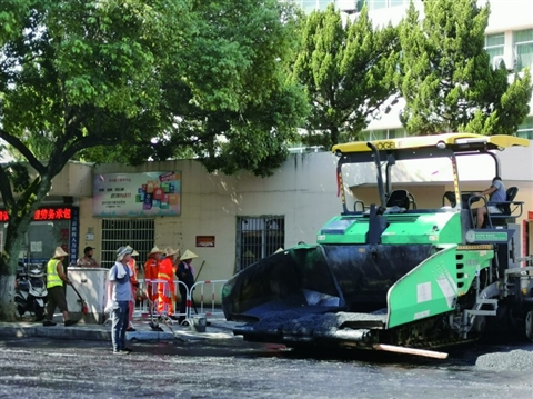 前几天,我在白马路段看见工作人员正在铺设沥青。连日来,为减少城区主干道改造提升工程施工带来的不便,工作人员大汗淋漓赶进度,真赞! 饶珍子