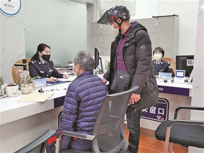 刑满释放人员陈某某由于多次判刑又没有及时落户造成无户。近日,天马街道政务服务中心窗口工作人员通过线上沟通、线上传输打印相关证明材料、联系沟通查询档案的方式,灵活采用本人承诺书的形式简化办事流程,在两个小时就为其办理落户及身份证。图为工作人员陪同陈某某办理落户事项。