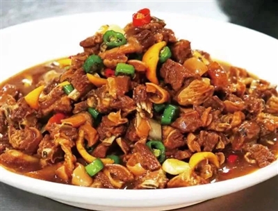 【特色】柚皮炒羊肉,色泽红亮、鲜嫩不腻、唇齿留香。