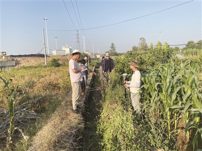 9月27日早上7点,金川街道组织金川弄村两委开展浙西窗口服务区南北通道项目土地丈量分户征收工作,经过一天的努力,完成项目北侧接线全部15亩土地的丈量工作。通讯员 陈剑 摄