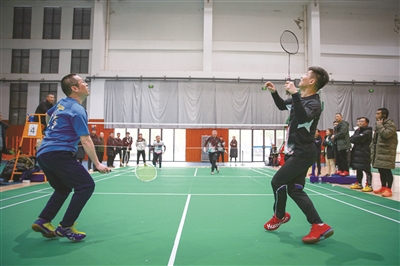 日前,“中精轴承杯”第四届三山羽毛球邀请赛于我县开赛,来自常山、江山、玉山、龙游等地的16支队伍170名运动员参赛。赛场上,运动员们精神饱满、活力四射,将高远球、扣杀、劈杀、挑球等各路球技展现的淋漓尽致,比赛精彩纷呈。图为比赛现场。