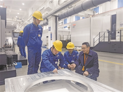 聚焦优化营商环境,全力服务企业发展。近日,“常青藤”助企服务第三小组成员来到浙江先导精密机械有限公司车间,积极开展专题研讨,协调各方资源,为企业解决实际困难。图为成员李愈胜(右一)正在和车间工人交流。
