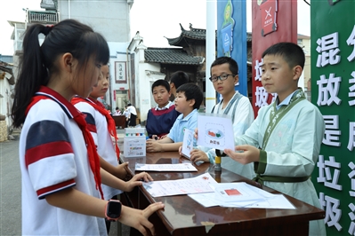近日,县何家乡中心小学结合乡村资源,开展垃圾分类宣传活动。活动中,孩子们身着汉服“穿越”回古代,了解古人在垃圾分类和回收方面的智慧。让传统文化与垃圾分类元素同频共振,让垃圾分类深入人心,融入日常。