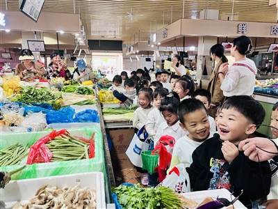日前,球川镇第二中心幼儿园组织大班孩子走出“课堂”,来到菜市场开展社会实践活动。孩子们在老师的带领下自主购买各类商品,充分感受到了社会实践活动带来的乐趣,培养了幼儿的交往能力和语言表达能力。