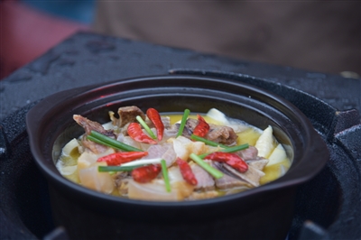 鲜香辣味,常山特色。11月21日,在辉埠镇路里坑村大熊饱店的鲜辣美食工坊,记者看到,以辣为底、以鲜为质的各种鲜辣美食琳琅满目,吸引着四方宾客。工坊里,白烟弥漫,十余名厨房工作人员分工明确,各司其职,忙着配菜、切菜。灶台前,三口大锅火力全开,经过“鲜辣厨师”专业培训的主厨余易锋正动作麻利地烧制颇具常山风味和店铺特色的鲜辣美食,忙得不可开交。