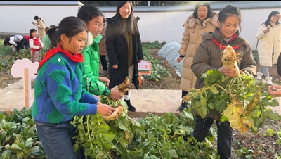 近日,辉埠镇中心小学劳动基地迎来了丰收,各个班级陆续进行集中采收和销售活动。通过让学生全程参与蔬菜生产过程,进一步树立了他们正确的价值观,培养创新开拓精神和珍惜劳动成果的美好品德。