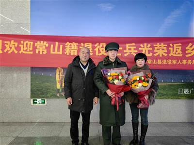 日前,县退役军人事务局在衢州火车站设立迎接站点,迎接常山籍退役军人光荣返乡。在出站口,县退役军人事务局工作人员为返乡退役军人披上“光荣退役”的绶带,并送上鲜花,代表家乡人民向为国防和军队建设作出贡献的他们送去问候和感谢。