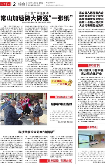绿色发展更是上游端的重中之重。去年,常山经济开发区列入省级减污降碳试点,特种纸企业鹤丰、哲丰、常林等3个项目入选省级减污降碳标杆项目,常山经济开发区入选第二批浙江省星级工业园区“污水零直排区”培育名单。