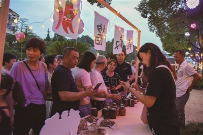 7月29日晚,由县委宣传部、团县委等10多个部门联合举办的等你“箱”遇·有“礼”而来——云上地上“箱”遇常山夜间美好活动在文峰广场举行。活动共设有直播展销区、后备箱售卖区、地摊区、互动宣传区、非遗展示区以及农特产品区6个区块。盆栽植物、宠物用品、油画、小米产品、儿童玩具等各类商品引得过往市民流连忘返。记者 徐林 俞国文 通讯员 李志强 王建华 摄