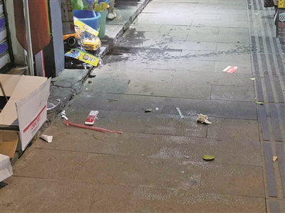 9月2日19时11分,大街付氏文具店里扔出不少垃圾,这些垃圾散落在路面上十分不美观,门前五包不到位。通讯员 李建平 摄