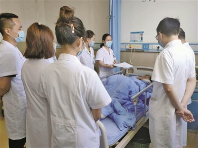 近日,常山县人民医院援川医师胡芝仙为古蔺县妇科医师进行《POP-Q分期系统的临床应用》培训,讲解盆腔器官脱垂的各种治疗方案。图为胡芝仙医师(右三)在古蔺县人民医院为妇科医师现场教学。记者 刘建华 摄