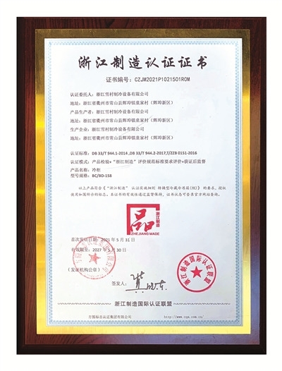 今年1月中旬,雪村制冷在当地制冷企业中率先拿到了含金量十足的“浙江制造”标识。“浙江制造”标识,是指能够代表浙江制造业先进性的区域品牌形象标识,必须满足品质卓越、自主创新、产业协同、履行社会责任等四个方面的要求。制造企业如果想加入到“浙江制造”中,必须先对照有关标准自查自审,然后向认证联盟(首批试点的有4家认证企业)申请,在进行产品、管理体系认证后,联盟将核发认证标志。据悉,“浙江制造”认证过程极其严苛。一旦通过认证,企业将可享受融资支持、优先列入上市后备企业、同等条件下优先采购等政策扶持。从最初辗转于全国旧货市场,到现在的品质保证,雪村制冷走过了19个年头。“2003年,企业最开始只做了一种产品,那就是点菜柜,主要用于菜的展示。”雪村制冷总经理李自成回忆,一开始,由于冷柜在小作坊里生产,做工粗糙,到家电市场上推广,遭遇了“闭门羹”。雪村制冷的董事长王玉林那时还在贩卖二手家电,他另辟蹊径,将生产的新冷柜放到旧货市场上推广,效果出奇的好。三年时间,雪村制冷这个商用冷柜的名字在全国旧货市场上开始打响。然而,几年过去了,雪村制冷点菜柜的技术含量并没有提高,客单价在1300元左右徘徊,代理商没有利润,企业一年最多也就做1万台,产值只有1000多万元,利润更是微薄。于是,企业开始在品质上寻求突破。为了提升产品品质,企业开始生产技术含量更高的其他品类商用冷柜。2008年,雪村制冷开始生产厨房冰箱,2011年开始生产大型卧式冷柜,2017年产品进入便利店、超市。慢慢地,定制多功能的工作岛台,四门、六门的后厨冰箱等,逐渐成为雪村制冷的“拿手好戏”,从最初的年产1万台,发展到现在的年产15万台。“2020年以来,企业投入1700万元技术改造费用,去年一年内就申请了40个专利。”李自成翻出厚厚一沓专利证书,其中20个专利是冷柜的外观设计专利。“过去仅仅是将冷柜的钣金从平的折成弯的、竖的,现在为了符合视觉审美,要做成圆弧形的,或是异形的,需要提升工艺的技术含量。”李自成举例道。另外20个专利则是实用新型专利。“过去生产线上的钣金设备,一个工人做一道工序,现在的钣金设备,十多道工序能同时完成,既省时间又省人力成本。”李自成说。去年,雪村制冷投资200多万元引进了3台柔性折弯机。相比原来的机器,柔性折弯机能将原来的15道复杂工序全部压缩到1台机器进行,实现了一体化操作,工作人员也从原来的每道工序由1人专门负责压缩到2台机器仅需1人负责,大大减少了人工成本。“接下去,还要再投入近400万元改造3条生产线,逐步实现全面‘机器换人’‘一人多机’。”李自成表示。由于技术水平的不断提升,雪村制冷得到了海外市场的认可。“最早我们的冷柜出口菲律宾、缅甸、越南等国,由于新冠肺炎疫情影响,2020年整个海外市场的开拓基本停滞。”李自成说,从去年8月份开始,随着东南亚疫情缓和,雪村制冷尝试性地给泰国的代理商发了第一个柜,之后不断有人找上门来,仅三个月时间,来自泰国的冷柜订单就达到100万美元。